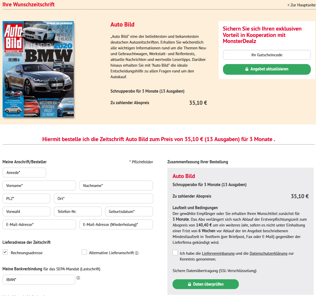AlphaTier 14.05.2020, 06:46 #Beim Auto Bild Abo von KioskPresse wird mir keine 35 € Prämie angezeigt.