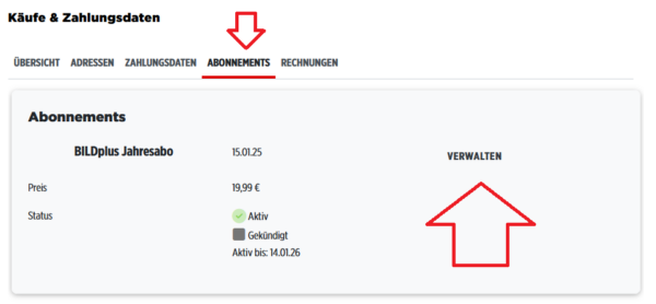 - Du kannst dein BILDplus-Abo ganz einfach im Benutzerkonto unter „Mein Konto“ -> „Meine Produkte“ verwalten.