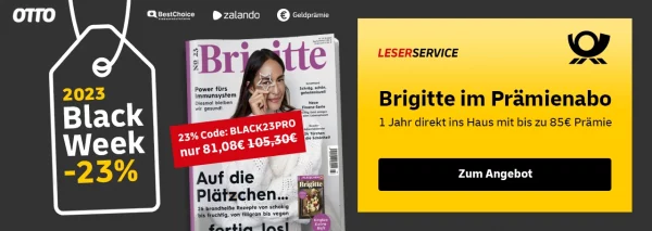 Beim LeserService der Deutschen Post erhaltet ihr als Black Friday Special bis einschließlich 25. November 12 Uhr das Brigitte Jahresabo für 81,08€ + bis zu 85€ Prämie!