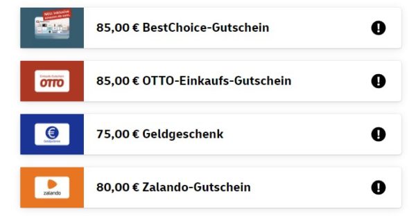 - Bis zu 85€ Prämie in Form verschiedener Gutscheine oder Bargeld