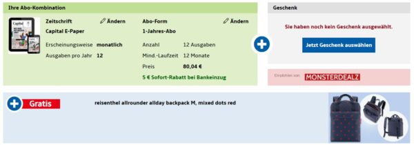 💥 Capital Digital E-Paper Jahresabo für 75,04€ + bis zu 80€ Prämie + GRATIS reisenthel Rucksack (Wert ~30€)