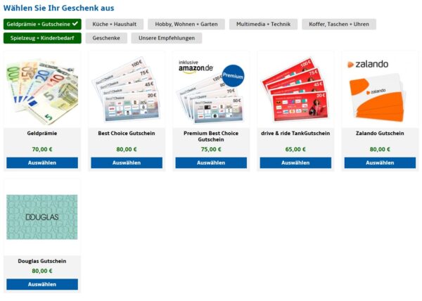 Diese Prämien stehen zum Beispiel zur Auswahl: