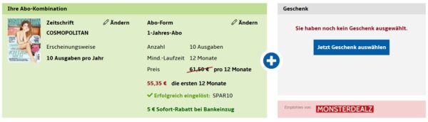 Bei Hobby + Freizeit gibt es das COSMOPOLITAN Jahresabo für 50,35€ + bis zu 50€ Prämie.