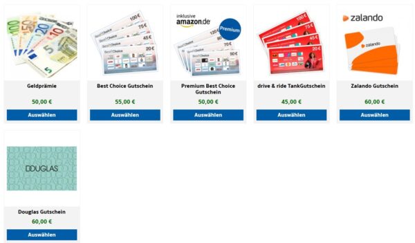 Diese Prämien stehen zum Beispiel zur Auswahl: