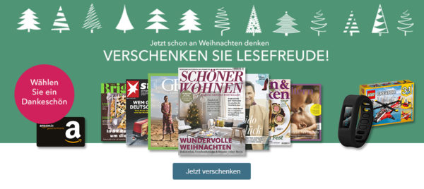 Beim deutschen Pressevertrieb ist nun wieder eine große Weihnachts-Kampagne mit vielen günstigen Abos gestartet. Aus unserer Erfahrung heraus kann man sagen, dass viele Abos womöglich schnell vergriffen sein werden. Aus diesem Grund empfehlen wir: Nicht lange überlegen, wenn euch eine Zeitschrift interessiert – zuschlagen!