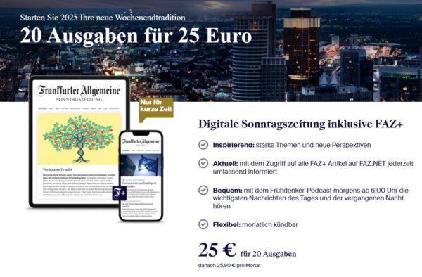 ⏰ F.A.S. Digital inkl. FAZ+ Neujahrsangebot 20 Ausgaben für 25€ + Gewinnspiel