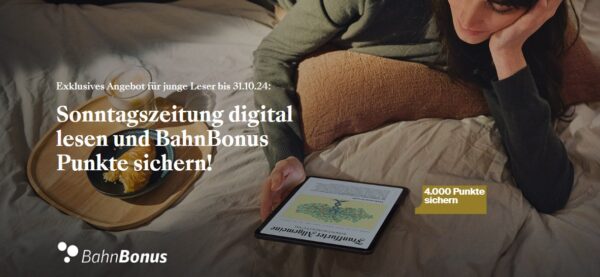 - Angebot: Sonntagszeitung digital lesen und 4.000 BahnBonus Punkte sichern!