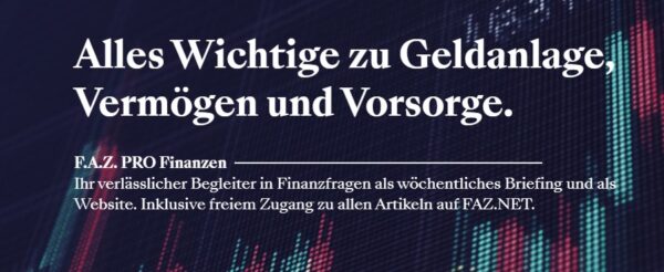 - Umfassend informiert mit F.A.Z. PRO Finanzen: Fundierte Analysen, praxisnahe Ratschläge und klare Orientierungshilfen für Ihre Finanzentscheidungen – kompakt, verständlich und präzise.