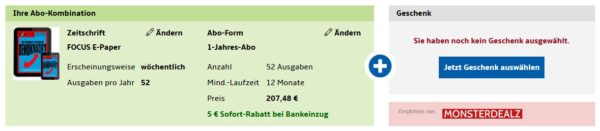 Bei Hobby + Freizeit gibt es das Focus E-Paper für 202,48€ + bis zu 190€ Prämie