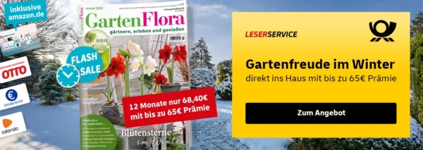 Schönes Ding! 🗞️ Im Rahmen eines Flash Sale des LeserService der Deutschen Post erhaltet ihr das GartenFlora Jahresabo für 68,40€ + bis zu 65€ Prämie! 😎