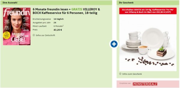 Halbjahresabo freundin für 43,20€ + GRATIS VILLEROY & BOCH Kaffeeservice für 6 Personen, 18-teilig (Wert ~95€)