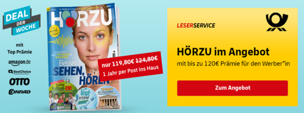 Hörzu Jahresabo für 119,80€ mit bis zu 120€ Prämie
