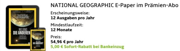 Jahresabo (12 Ausgaben) NATIONAL GEOGRAPHIC E-Paper für 54,96€ beziehen + bis zu 50€ Prämie