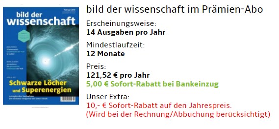 - Jahresabo Bild der Wissenschaft für 121,52€