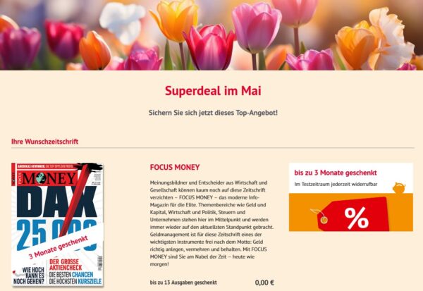 Mai Sale bei Kiosk.News! Dort bekommt ihr gerade verschiedene Abos im Angebot…