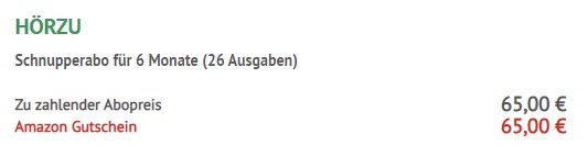 - Hörzu Halbjahresabo für 65€ + 65€ Amazon.de Gutschein*