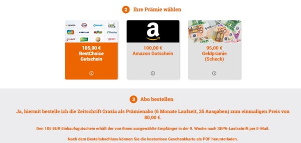 Bei Abofreude erhaltet ihr jetzt ein Grazia Halbjahresabo für 80€ + bis zu 105€ Prämie.
