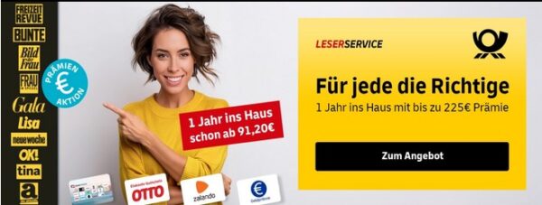 Leserservice August Angebote – z.B. Bild der Frau für 119,80€ + bis zu 60€ Prämie