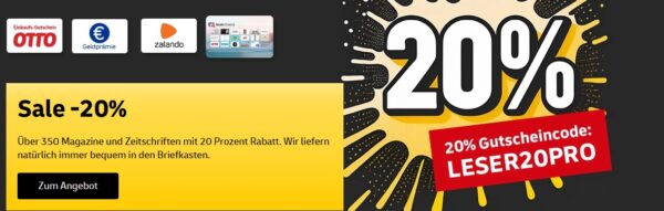 Beim Leserservice bekommt ihr nun im Rahmen eines Sales 20% Rabatt auf über 350 Zeitschriften (ohne MBW)