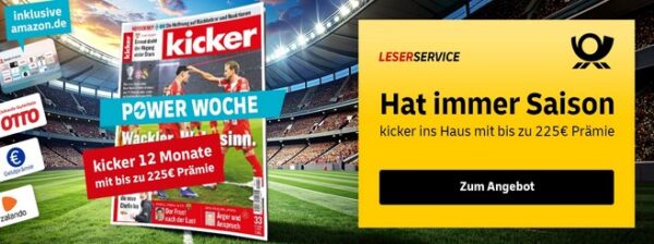 LeserService: Deal der Woche – kicker Jahresabo für 371,30€ + bis zu 225€ Prämie