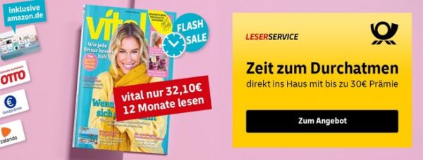 LeserService: Flash-Sale – vital Jahresabo für 32,10€ + bis zu 30€ Prämie