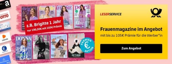 Leserservice: Frauenmagazine mit erhöhten Prämien sichern – z.B. Brigitte für 100,30€ + bis zu 105€ Prämie