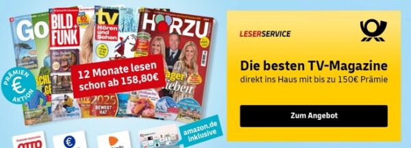 Leserservice – z.B. TV Hören+Sehen für 164€ + bis zu 150€ Prämie