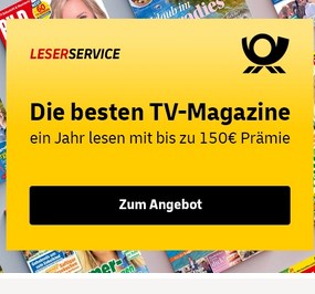 - Fernsehwoche für 140,75€ + bis zu 50€ Prämie