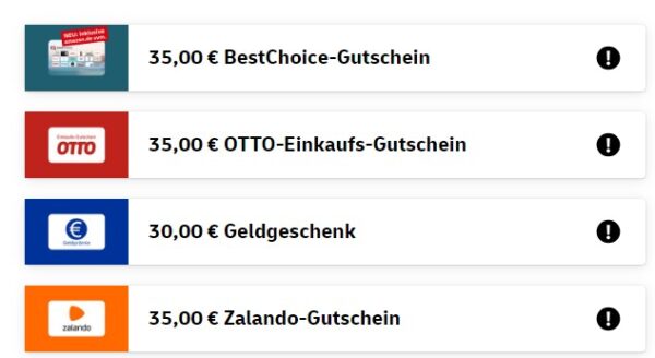 - Bis zu 35€ Prämie in Form verschiedener Gutscheine oder Bargeld