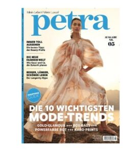 Das Leben genießen, dazu gehört Mode, Society, Reisen, Kultur, Karriere, Lifestyle und: „petra“. Im Abo informiert, inspiriert und animiert „petra“ ihre Leserinnen jeden Monat neu. Sie sind dynamisch, aufgeschlossen und selbstständig? Abonnieren Sie mit „petra“ das volle Leben. Denn „petra“ bezieht Position. Und zeigt Richtungen und Möglichkeiten für junge Frauen von heute.