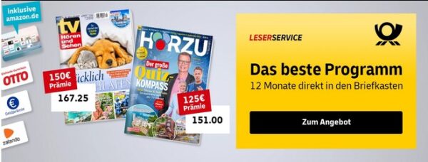 Leserservice Weekend Angebote – z.B. HÖRZU für 151€ + bis zu 125€ Prämie