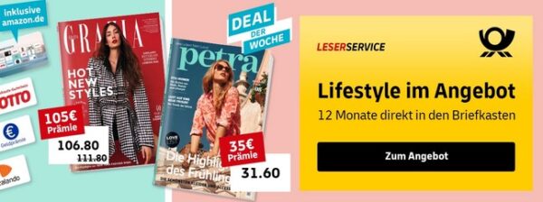 Beim Leserservice der Deutschen Post erhaltet ihr jetzt das Jahresabo Petra & GRAZIA mit erhöhten Prämien.