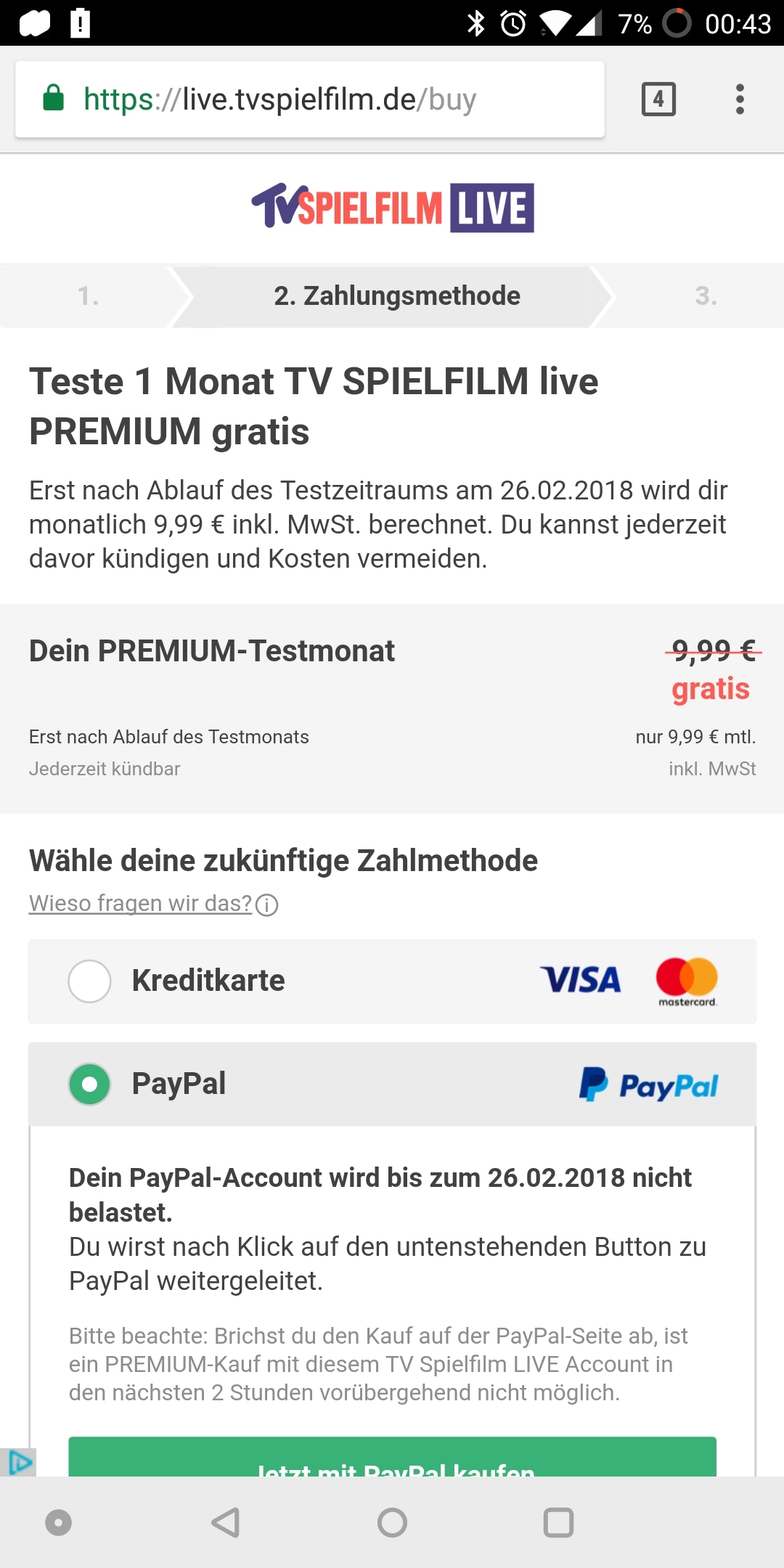 Bitte beachten Sie, dass im Rahmen der Registrierung bei TV Spielfilm LIVE erneut Ihre Zahldaten abgefragt werden.