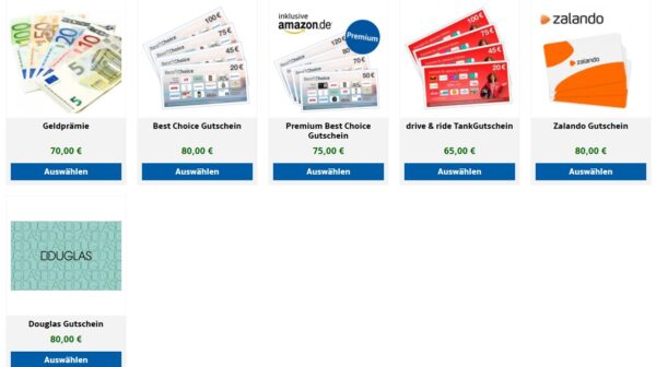 Diese Prämien stehen zum Beispiel zur Auswahl:
