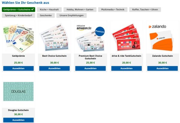 Diese Prämien stehen zum Beispiel zur Auswahl: