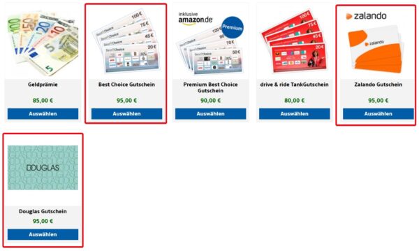 Diese Prämien stehen zum Beispiel zur Auswahl: