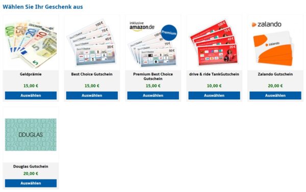 Diese Prämien stehen zum Beispiel zur Auswahl: