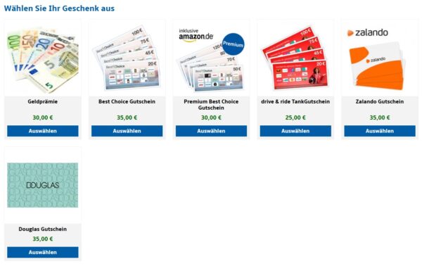 Diese Prämien stehen zum Beispiel zur Auswahl: