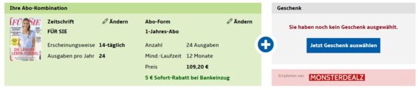 Bei Hobby + Freizeit gibt es das FÜR SIE Jahresabo für 104,20€ + bis zu 100€ Prämie.