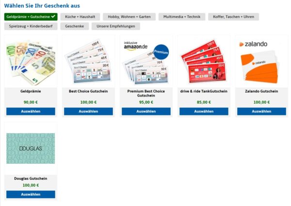 Diese Prämien stehen zum Beispiel zur Auswahl: