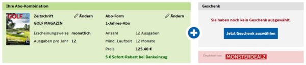 Bei Hobby + Freizeit gibt es das GOLF MAGAZIN Jahresabo für 120,40€ + bis zu 105€ Prämie.