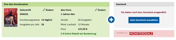 *SUPER* GRAZIA Jahresabo für 118,50€ + bis zu 115€ Prämie