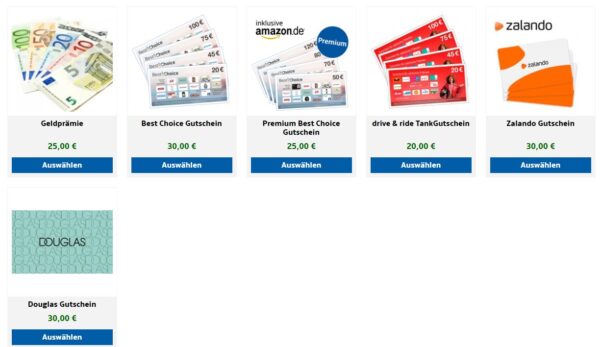 Diese Prämien stehen zum Beispiel zur Auswahl: