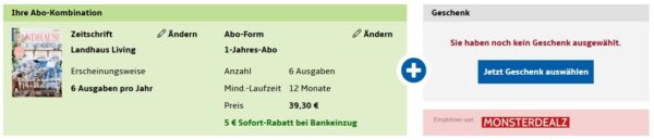 Bei Hobby + Freizeit gibt es das Landhaus Living Jahresabo für 34,30€ + bis zu 30€ Prämie.