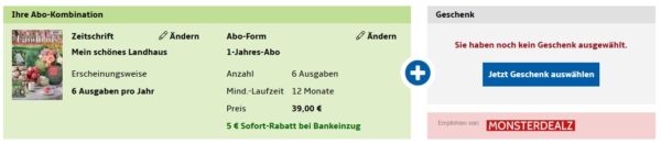 Bei Hobby + Freizeit gibt es das mein schönes Landhaus Jahresabo für 34€ + bis zu 30€ Prämie.