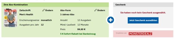 Bei Hobby + Frezeit gibt es die Men’s Health als E-Paper Jahresabo für 79,60€ + bis zu 75€ Prämie.