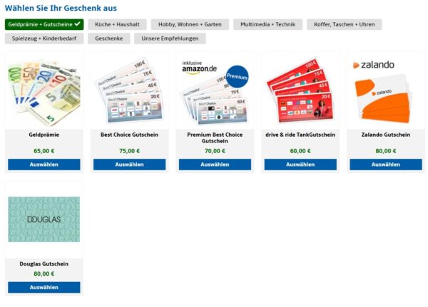 Diese Prämien stehen zum Beispiel zur Auswahl: