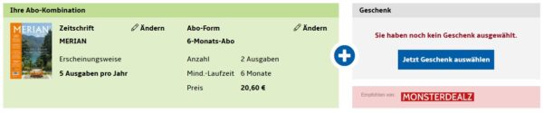 *SUPER* MERIAN 6-Monats-Abo für 20,60€ + bis zu 15€ Prämie