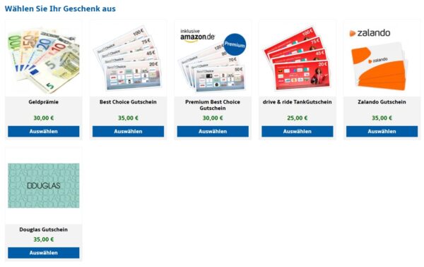 Diese Prämien stehen zum Beispiel zur Auswahl: