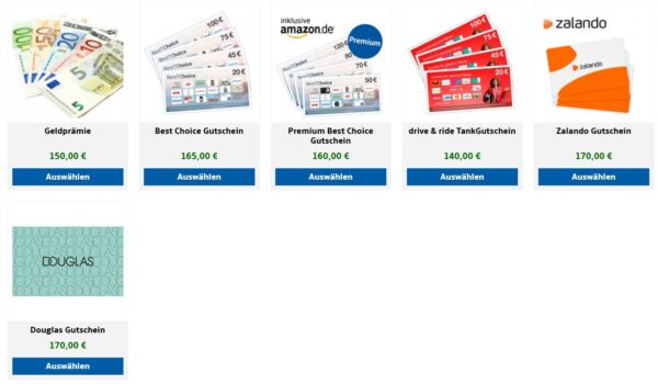 Diese Prämien stehen zum Beispiel zur Auswahl: